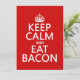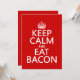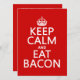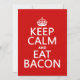This reads Keep Calm and Eat Bacon, in the style of the classic keep calm poster. It's a beautiful simple and funny design, which will please any bacon lover in your life.