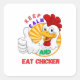 "Keep Calm and Eat Chicken" is a playful and humourous design that features the iconic "Keep Calm and Carry On" phrase, with a twist that incorporates the idea of enjoying a delicious serving of chicken.