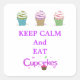 A fun saying featuring three delicious cupcakes with colourful swirly frosting, says 'keep calm and eat cupcakes'... nuff said.