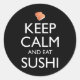 Keep Calm And Eat Sushi. This funny sushi lover accessory is a great sushi lover gift for a man, woman, girls, boys, teens & kids who love to eat sushi & sashimi at Japanese restaurants, and love wasabi, ginger and soy sauce. If you love Japanese food, and eating tuna maki rolls and nigiri sushi with vinegared rice, this sushi lover accessory is for you!
