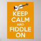 Don't panic, Keep calm and Fiddle On!! A great gift for fiddlers, violinists and lovers of music. Show this off at your session or orchestra rehearsal or give it as a present to a musician. A funny version of the popular wartime posters, this features a violin on an orange background with the words "Keep Calm and Fiddle On"