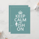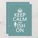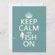 This reads Keep Calm and Fish On, in the style of the classic keep calm poster. There is a silhouette of a fisherman sitting on the edge of the words, his rod hanging off the edge. It's a beautiful simple design, which will be loved by everyone who loves to fish.