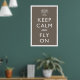 Fantasy dirigible encourages everyone to "Keep Calm and Fly On" in this fun twist on the popular British poster from World War 2. Originally in red and white, this version takes a more neutral turn in slate grey and white.