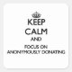 Keep Calm And Focus On Anonymously Donating Square Sticker