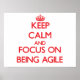 Use the search tool at my store to find other Being Agile merchandise. Keep Calm and focus on Being Agile products available on tshirts,sweatshirts,kids shirts, infant onsies, stickers, magnets, and much more Being Agile clothing fully customizable to your specifications. If you like what you see, please link to my store (www.zazzle.com/shirtsforall) or email a friend.