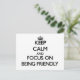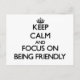 Keep Calm and focus on Being Friendly Postcard