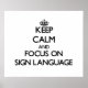 Use the search tool at my store to find other Sign Language merchandise. Keep Calm and focus on Sign Language products available on tshirts,sweatshirts,kids shirts, infant onsies, stickers, magnets, and much more Sign Language clothing fully customisable to your specifications. If you like what you see, please link to my store (www.zazzle.com/thisandthatgifts) or email a friend.