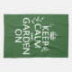 This reads Keep Calm and Garden On, in the style of the classic keep calm poster. Leaves are growing from the letters. It's a beautiful simple design which makes a beautiful range of products for the gardener in your life.