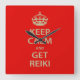 What an excellent clock for your reiki room! Keep Calm and Get Reiki is a take-off on the old World War II poster "Keep Calm and Carry On", hung all over London during the Blitz.