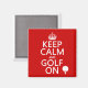 This is the classic Keep Calm poster reworded to 'Keep Calm and Golf On'. There is a silhouette of a golf ball on a tee next to the letters. It's a striking design, popular with everyone who loves golf. Available on a wide range of products, from towels to storage jars, to travel tags. It makes great gifts for golfers and golf fans.