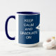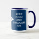 Keep calm and graduate on navy blue and white mug