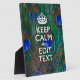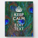 Keep Calm And Have Your Text on Peacock Feathers Plaque