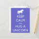 Keep Calm and Hug a Unicorn with unicorn mythical creature design. A parody of the Keep Calm and Carry On posters.