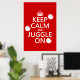 This reads Keep Calm and Juggle On, in the style of the classic keep calm poster. Three juggling balls are beside the letters. It's a beautiful design, great for anyone who loves to juggle, whether posters and t-shirts for a juggling get together, or gifts and giveaways for a juggling school. There's something for every juggler in your life.