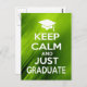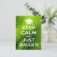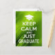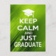 A postcard featuring keep calm and just graduate slogan, a variation of the famous keep calm and carry on slogan