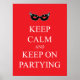 This is a spoof of of the popular "Keep Calm and Carry On" poster. This poster has an image of a party mask and the words "Keep Calm and Keep on Partying". Great gag gift for the party animal in your life. If you would like a different colour scheme, let me know.