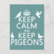 The design reads Keep Calm and Keep Pigeons, in the style of the classic poster. There are pigeons fluttering around the words. It's a beautiful design, and makes perfect gifts for everyone who loves and keeps pigeons.
