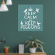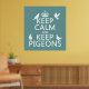 The design reads Keep Calm and Keep Pigeons, in the style of the classic poster. There are pigeons fluttering around the words. It's a beautiful design, and makes perfect gifts for everyone who loves and keeps pigeons.