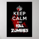 Keep Calm And Kill Zombies Funny Poster Walking dead bloody zombie art.