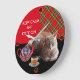 KEEP CALM AND KITTY ON ,RED TARTAN TEA PARTY LARGE CLOCK
