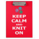 Keep Calm and Knit On, personalized on back Clipboard