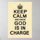 Cool, cute, trendy, artistic, sassy and colorful! This colourful, fresh stylish trendy inspirational Keep Calm and Know God Is In Charge Christian message poster is sure to feed your soul and keep your spirit uplifted. Use the customize it button to change the background color. If you have questions or want this design on another product, please contact: cheryl@cheryldanielsart.com.