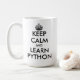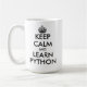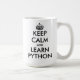 Keep calm and learn Python funny software engineer Coffee Mug. Custom keep calm and carry on template with crown. Make your own humourous meme quote. Fun Birthday gifts for software engineer, corporate colleague, co worker, boss, manager, employee, best friend, director, staff, personnel, consultant, IT specialist, database administrator, computer scientist, data scientist etc. Custom colour cups.
