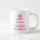 Keep Calm and let a senior sophomore handle it Giant Coffee Mug. Custom large jumbo XL Giant Coffee Mug. Create your own funny keep calm and carry on quote cup. Modern keep calm typography template with pink crown. Fun personalised 20oz drink ware for university and college students, son, daughter, friend etc. White oversized coffee mugs with double sided print design. Dishwasher and microwave safe.
