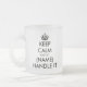 Keep calm and let (blank) handle it funny Frosted Glass Coffee Mug. Make your own cool cup for tea, coffee and other drinks. Fun Birthday gift idea for friends, family, colleague, coworker, boss etc. Add your own unique name. Black and white text with crown. Customisable colours.