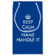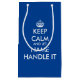 Keep calm and let handle it funny blue gift bag. Modern typography with crown. Blue or custom colour. Fun for unique personalised presents.