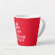 Make your own funny keep calm and let handle it latte mug. Custom coffee cup with vintage keep calm and carry on typography template including a black crown. Fun drinkware for home or office. Create humourous Birthday presents for mum, dad, father, grandpa, husband, wife, co worker, colleague, teacher, coach, friends, manager, employees, family, business boss, Trump fan etc. Cone shaped glass printed on both sides. Available in 12oz and extra large 17oz size. Cute drinking mugs with custom red background colour. Personalised office humour gift ideas.