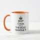 Keep calm and let the boss handle it funny coffee Mug gift. Create your own funny Keep Calm and Carry On parody. Modern typography template with crown. Fun personalised cups for home or office. Add your own custom text. Cool Birthday or Christmas gift idea for boss, manager, CEO, business owner, executive, director, chief, chairman, bossy friends, family, coworker, colleague, staff, employees, corporate workers, personnel etc. Orange coloured handle and inside. Double sided print. Also fun for boss day!