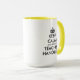 Keep calm and let the teacher handle it funny 15oz coffee Mug. Create your own funny Keep Calm and Carry On quote. Modern typography template with crown. Fun personalized cups for home, school or office. Add your own custom text. Cool Birthday or Christmas gift idea for kindergarten teacher, educator, coach, instructor, dean, principal, friends, family, coworker, colleague, staff, employees, corporate workers, personnel etc. Yellow colored handle and inside. Double sided print.