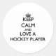 Keep Calm and Love a Hockey Player Classic Round Sticker
