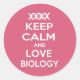 A product featuring keep calm and love biology design. This product is great for biology lovers, students and teachers
