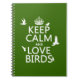 This reads Keep Calm and Love Birds. Silhouettes of birds fly and flutter around the words. It's a very beautiful design, popular with pigeon fanciers, birders, and all those that love our feathered friends.