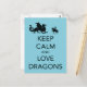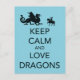 Keep Calm and Love Dragons Unique Print on Blue Postcard