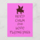 Keep Calm and Love Flying Pigs pink & brown print Postcard
