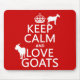 The design reads 'Keep Calm and Love Goats'. Two goat silhouettes stand on the letters. It's a beautiful design, great for anyone who works with goats, keeps goats, or just loves goats.