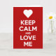 It's the very cute, classic, "Keep Calm And Love Me" greeting card. Featuring a heart above the words, this card is the perfect unique card for him or her this Valentine's Day... Grab yours today!