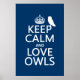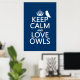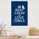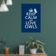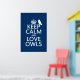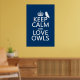 The design reads Keep Calm and Love Owls, in the style of the classic poster. There is a beautiful wise owl sitting on the words. It's a stylish design which makes a great range of presents for anyone who loves or works with owls.