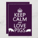 The design reads Keep Calm and Love Pigs, in the style of the classic poster. There are silhouettes of two little pigs beside the words. It's a popular design, which makes great products for anyone who really loves pigs.