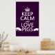 The design reads Keep Calm and Love Pigs, in the style of the classic poster. There are silhouettes of two little pigs beside the words. It's a popular design, which makes great products for anyone who really loves pigs.