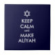 Features text reading "KEEP CALM AND MAKE ALIYAH." Aliyah (עלייה), meaning ascent, is the Hebrew word for immigration to Israel from the diaspora. Aliyah is considered to be "going up" in the direction of Jerusalem. What are you waiting for?