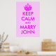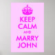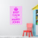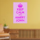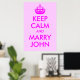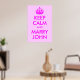A parody on a vintage British WWII poster to remind the freaked out bride to keep her head. Besides your choice in wording on this poster, the background colour can also be changed.