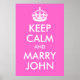 A parody on a vintage British WWII poster to remind the freaked out bride to keep her head. Besides your choice in wording on this poster, the background colour can also be changed.