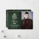 Keep Calm And Merry On, Dark Green Chalkboard Vintage Funny Post Pandemic Holiday / Christmas Photo Card.
