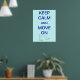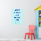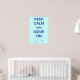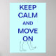 Keep Calm and Move On with outline drawing of two feet walking, is printed on light blue posters. The background colour can be customised.