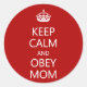 Keep Calm and Obey Mum, this funny spin-off of the popular "Keep calm and carry on" old British WWII poster propaganda is fun and funny for Mother's day or any day.  Mum will love having all the kids obey her and follow her sage advice.  Dark red background with white lettering and emblem.  Copyright © www.CuteComfy.com