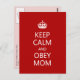 Keep Calm and Obey Mum, this funny spin-off of the popular "Keep calm and carry on" old British WWII poster propaganda is fun and funny for Mother's day or any day. Mum will love having all the kids obey her and follow her sage advice. Dark red background with white lettering and emblem. Copyright © www.CuteComfy.com